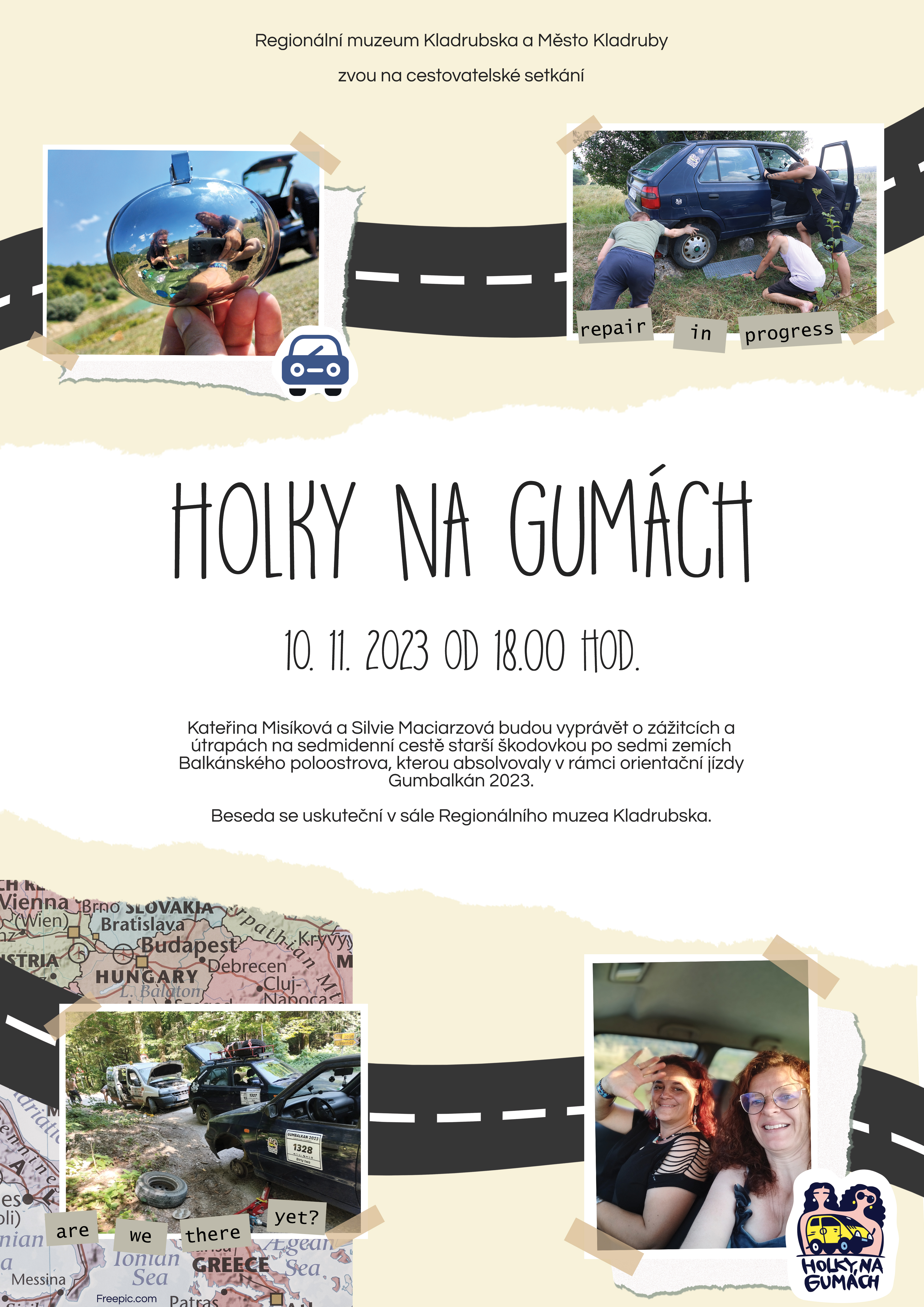 Pozvánka na cestovatelskou besedu nazvanou Holky na gumách. Beseda se uskuteční v pátek 10. listopadu od 18 hodin v sále Regionálního muzea Kladrubska.