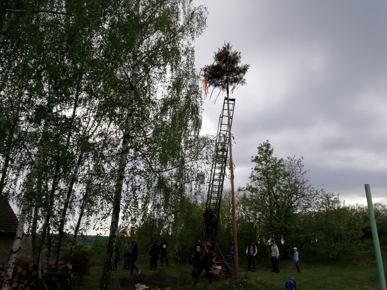 Stavění máje ve Skapcích.